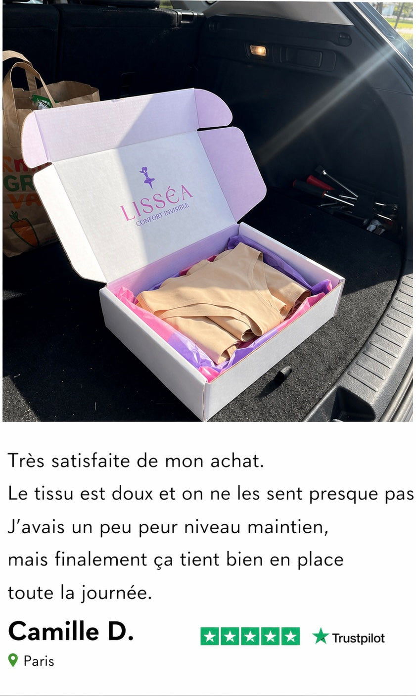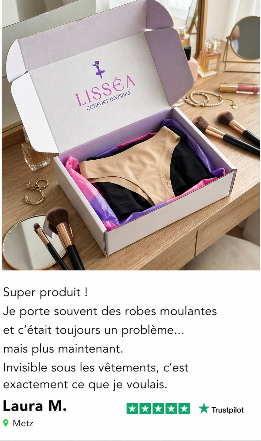 Grâce à sa coupe innovante et ses matières douces et respirantes, il élimine l’effet indésirable de « pâte de chameau » pour une silhouette parfaitement lisse sous tous vos vêtements. Invisible, léger et agréable à porter au quotidien, le string Lisséa devient vite un indispensable, alliant confiance et élégance en toute simplicité.